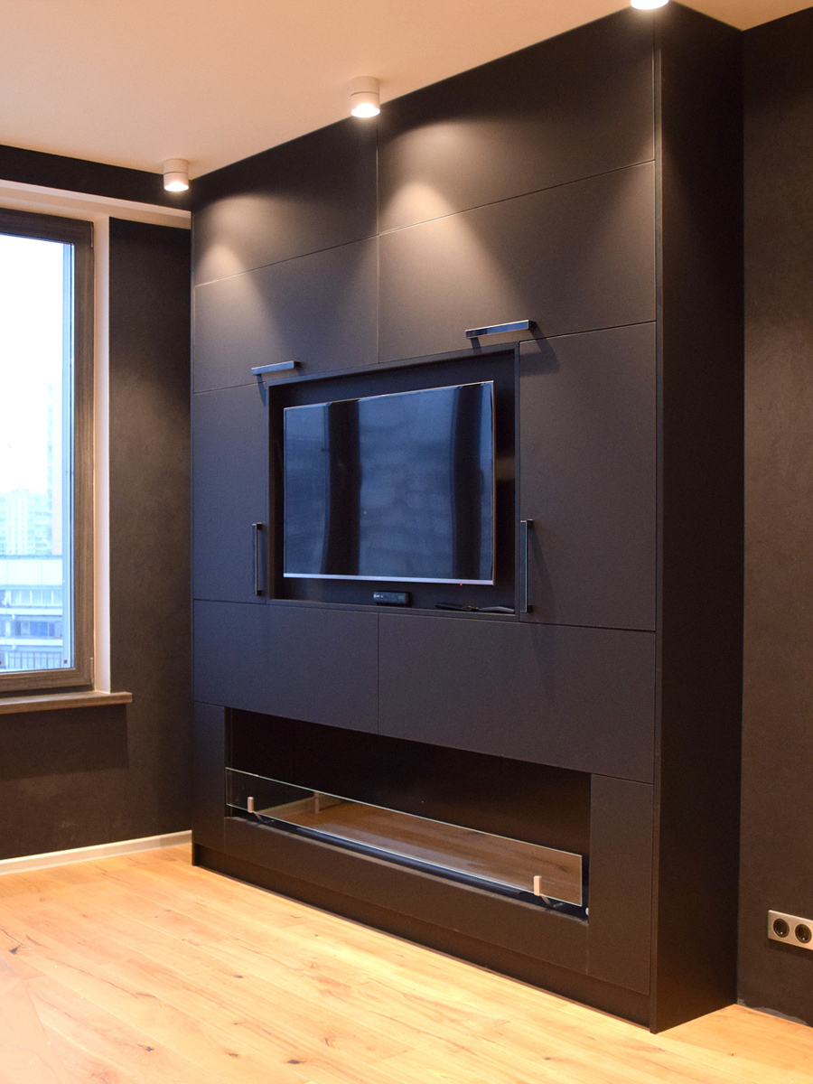 Теперь и квартире можно лицезреть огонь, благодаря встроенной мебели.