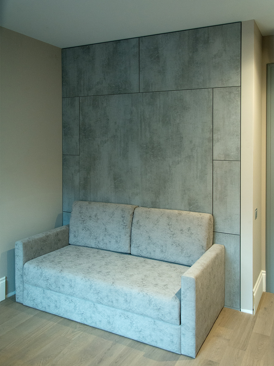 Вуаля, одним касанием фасада, шкаф превращается в мягкую кровать.