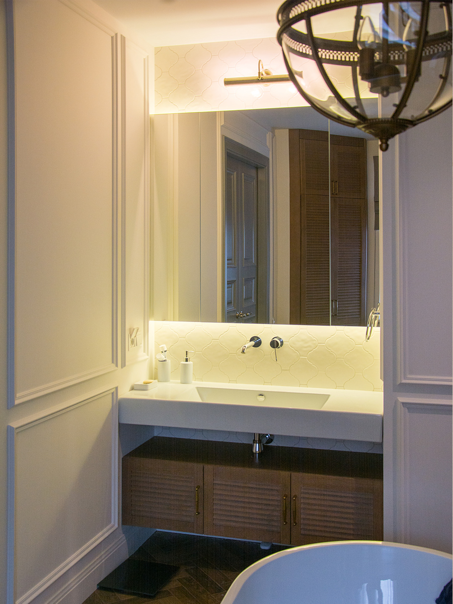 Роскошные ванные комнаты все больше похожи на гостиные. Установленные в них шкафчики и полки не отличить от мебели для жилых комнат.