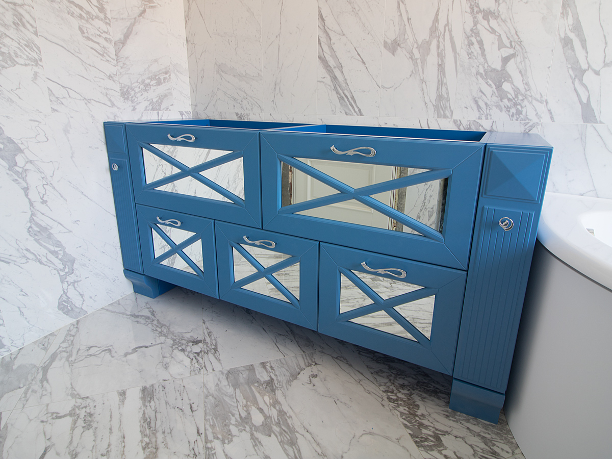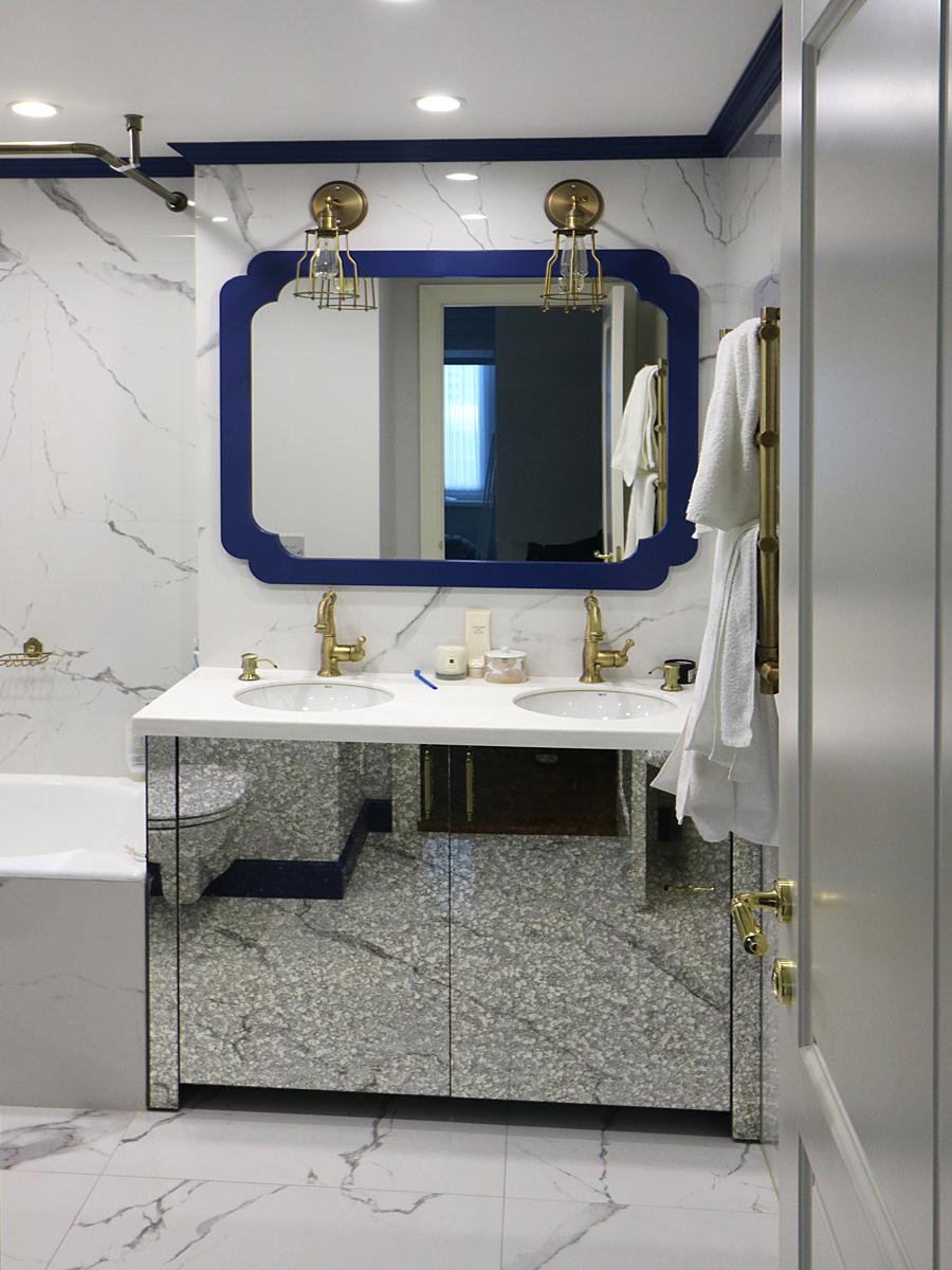 Наша самая любимая тумба!Зеркальная тумба, синее обрамление у зеркала,что может быть еще лучше.