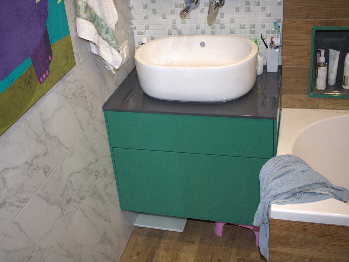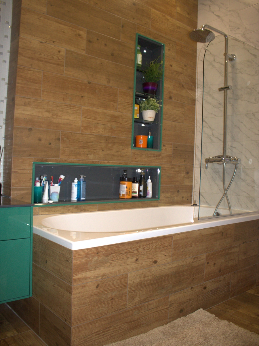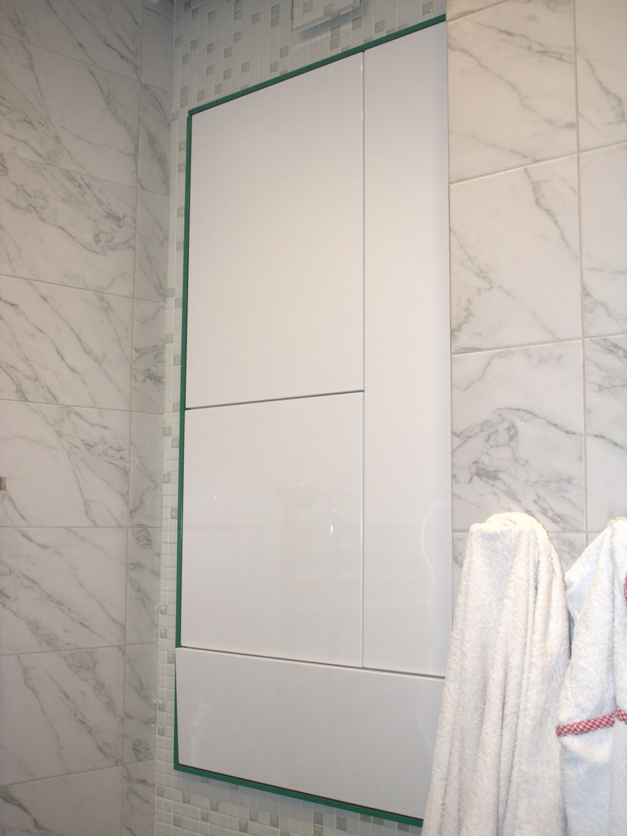 Встроенные в нишу полки в ванной комнате в г.Москва, Кутузовский проспект.