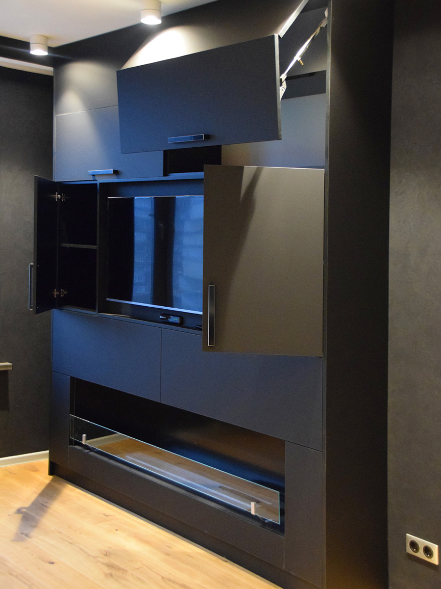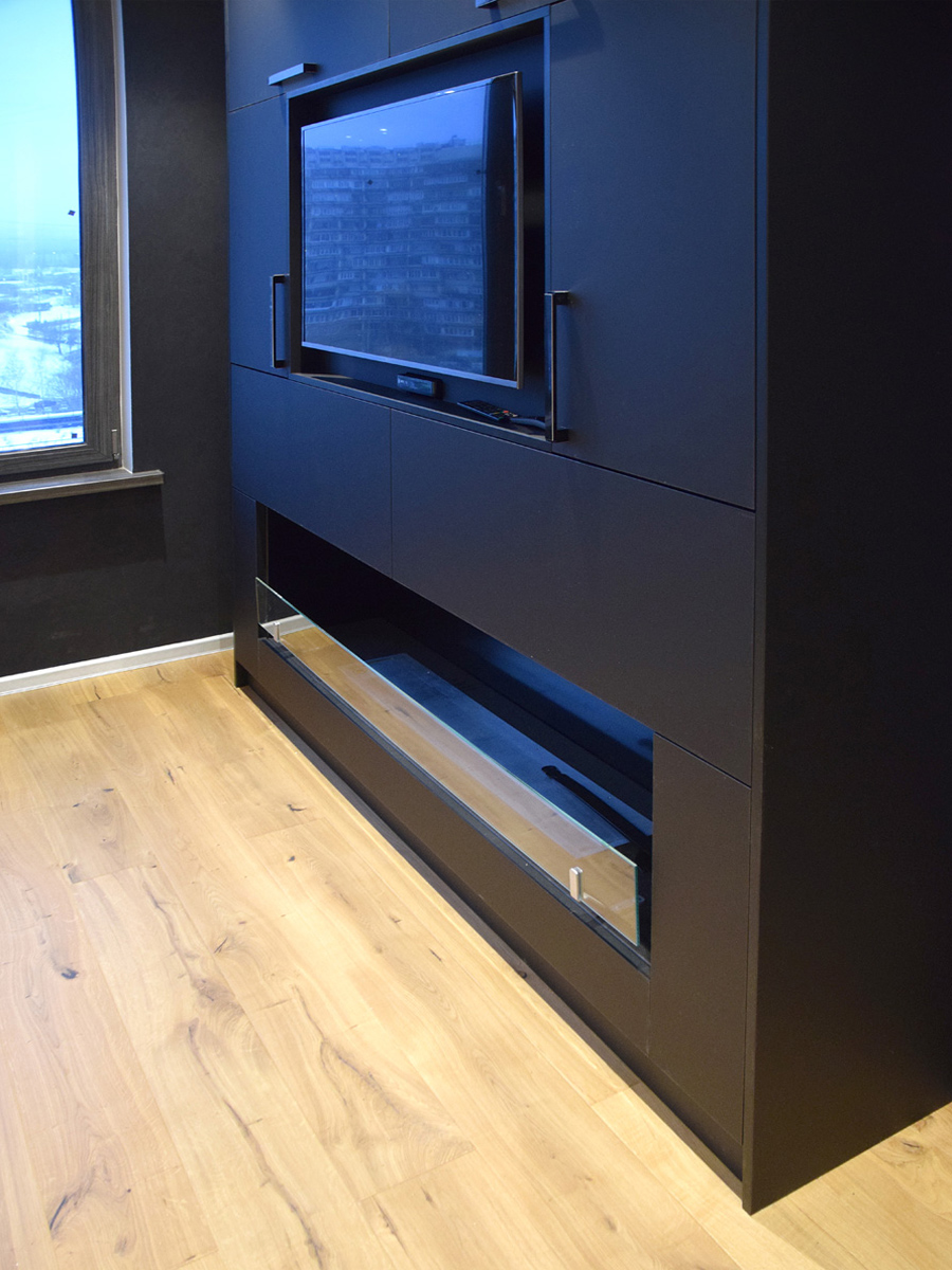 Теперь и квартире можно лицезреть огонь, благодаря встроенной мебели.