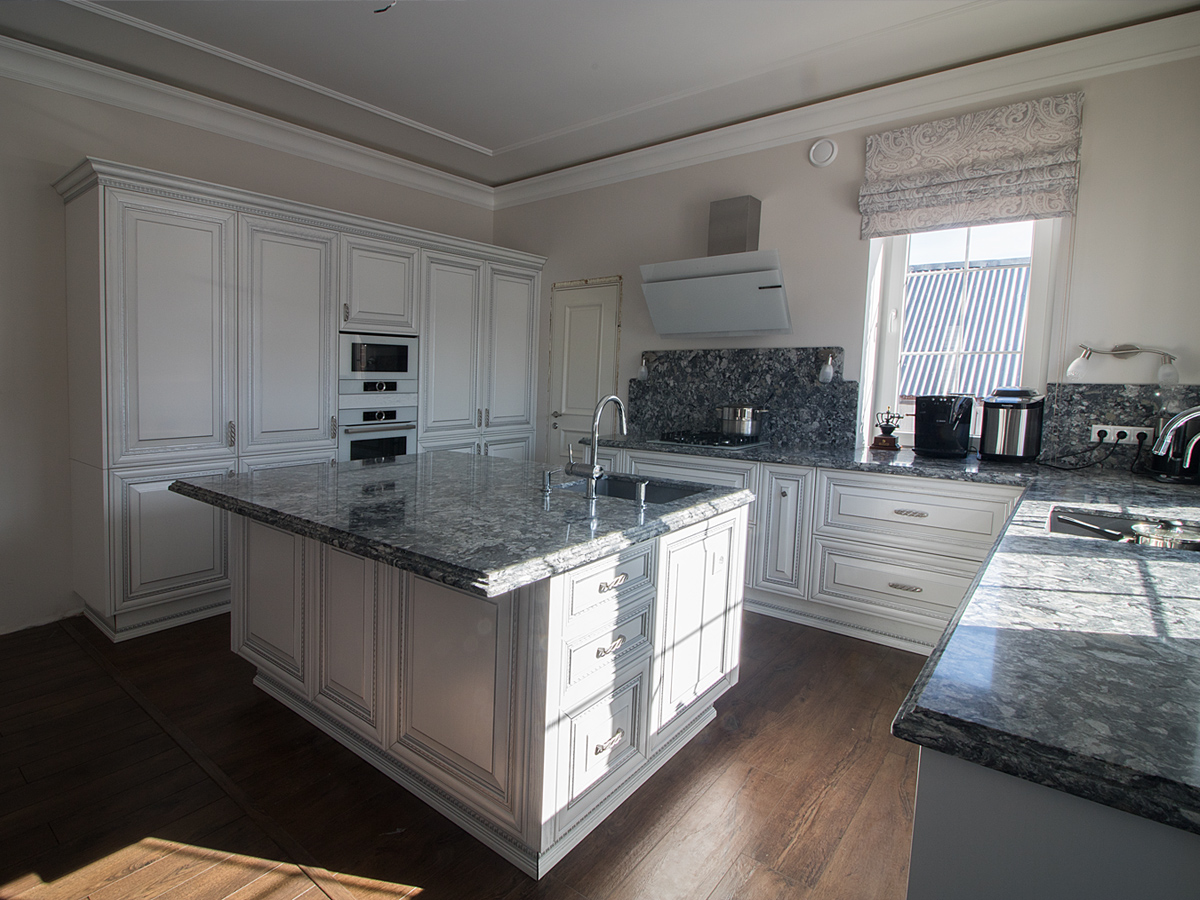 Фасад: массив дуба крашенный(итальянские фасады)+патина серебро