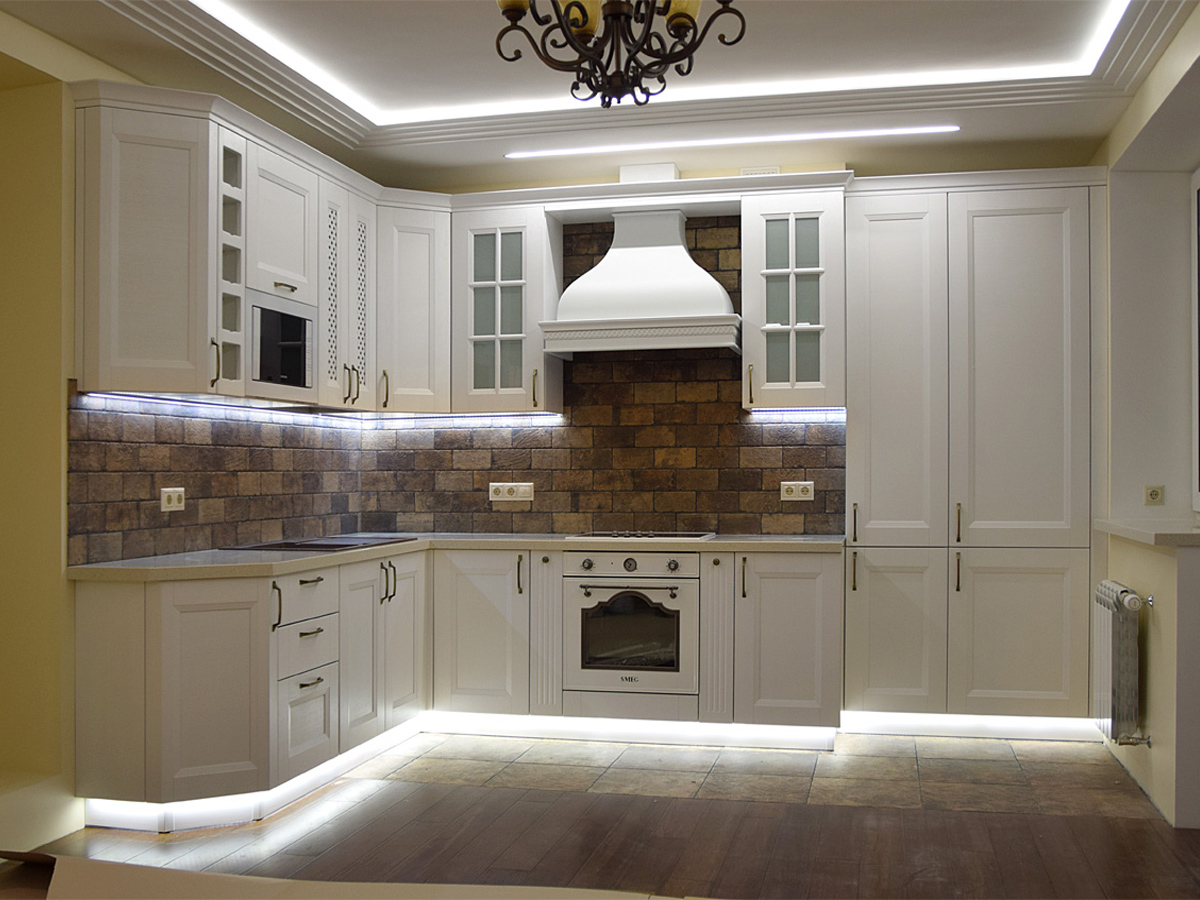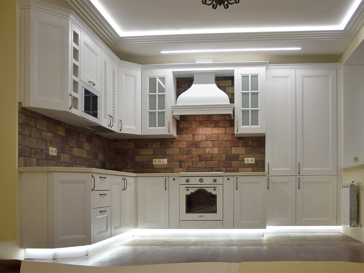Классика жанра-белоснежная классическая кухня из массива ясеня.