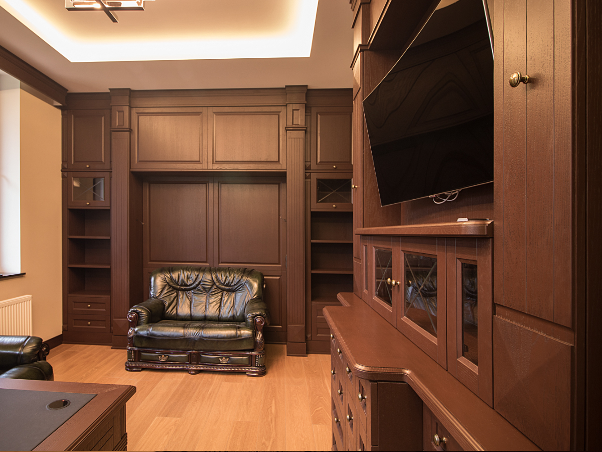 Ох, и не легкая была задача сделать мебель в этот кабинет,НО мы справились!