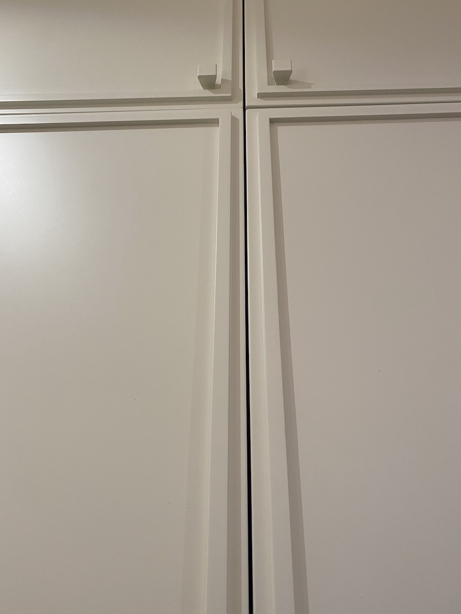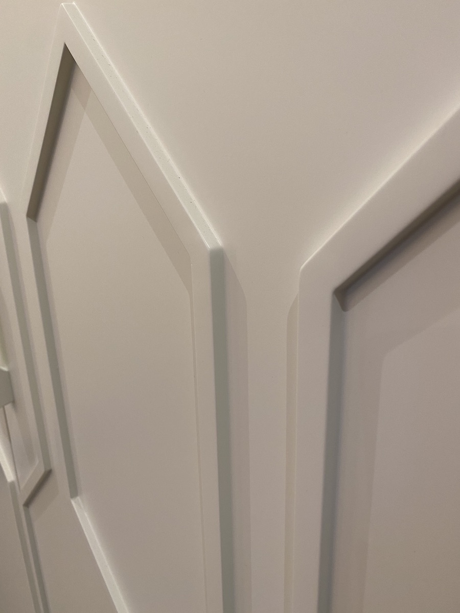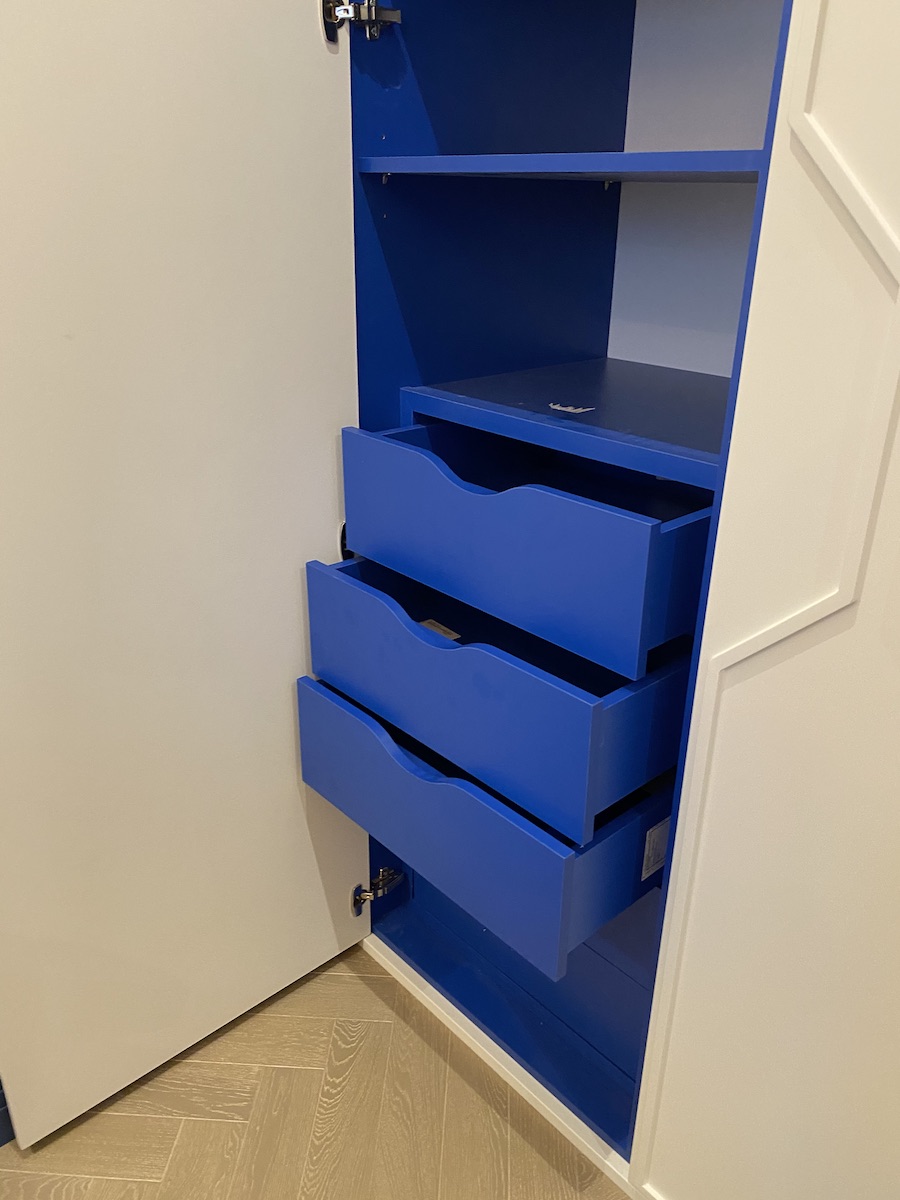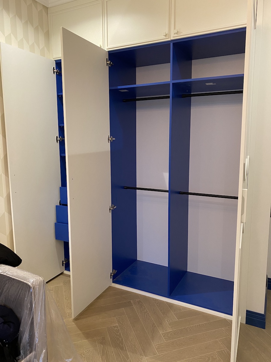 Геометрия в фасадах повторяет геометрию на обоях,благодаря этому создается объем и глубина.