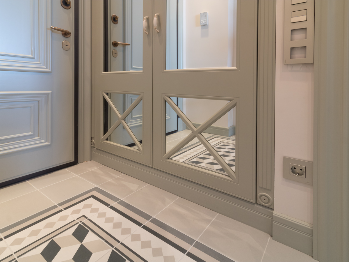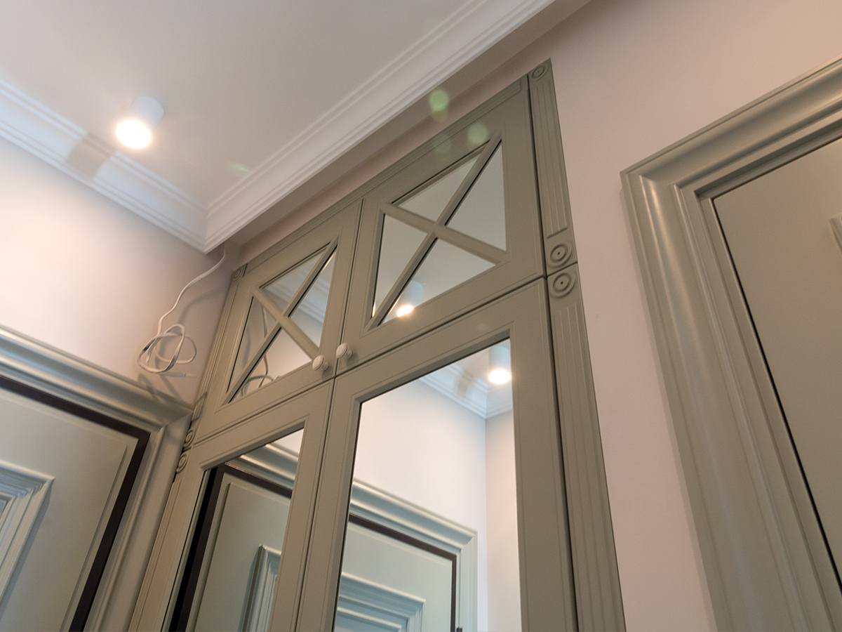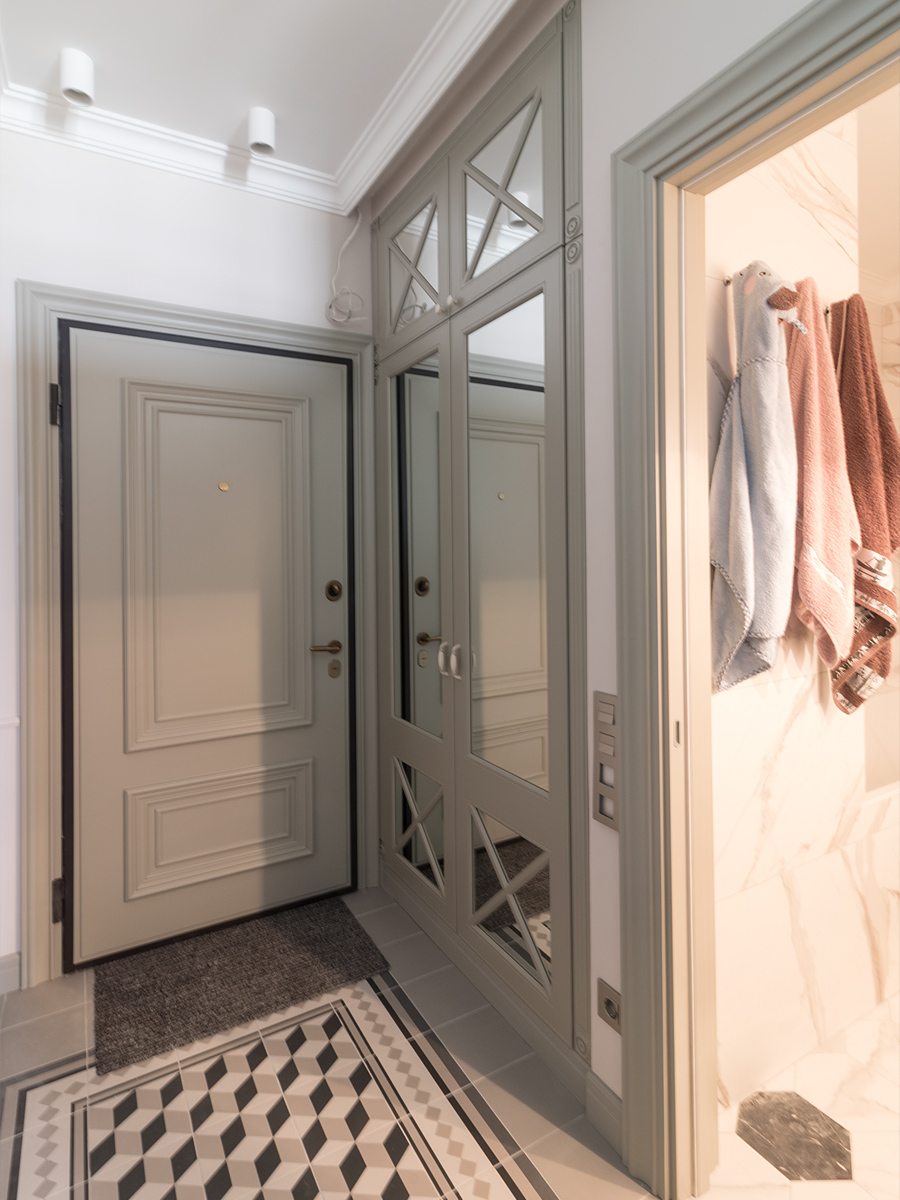 Очень стильно!Идеально подобранный цвет фасадов шкафа с межкомнатными дверями.