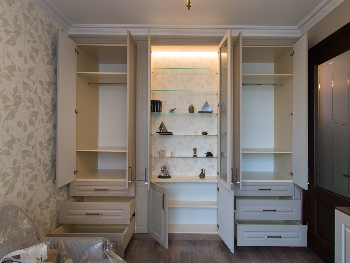 Вместительный шкаф для книг в кабинет,а витрина отлично подойдет для хранения статуэток.