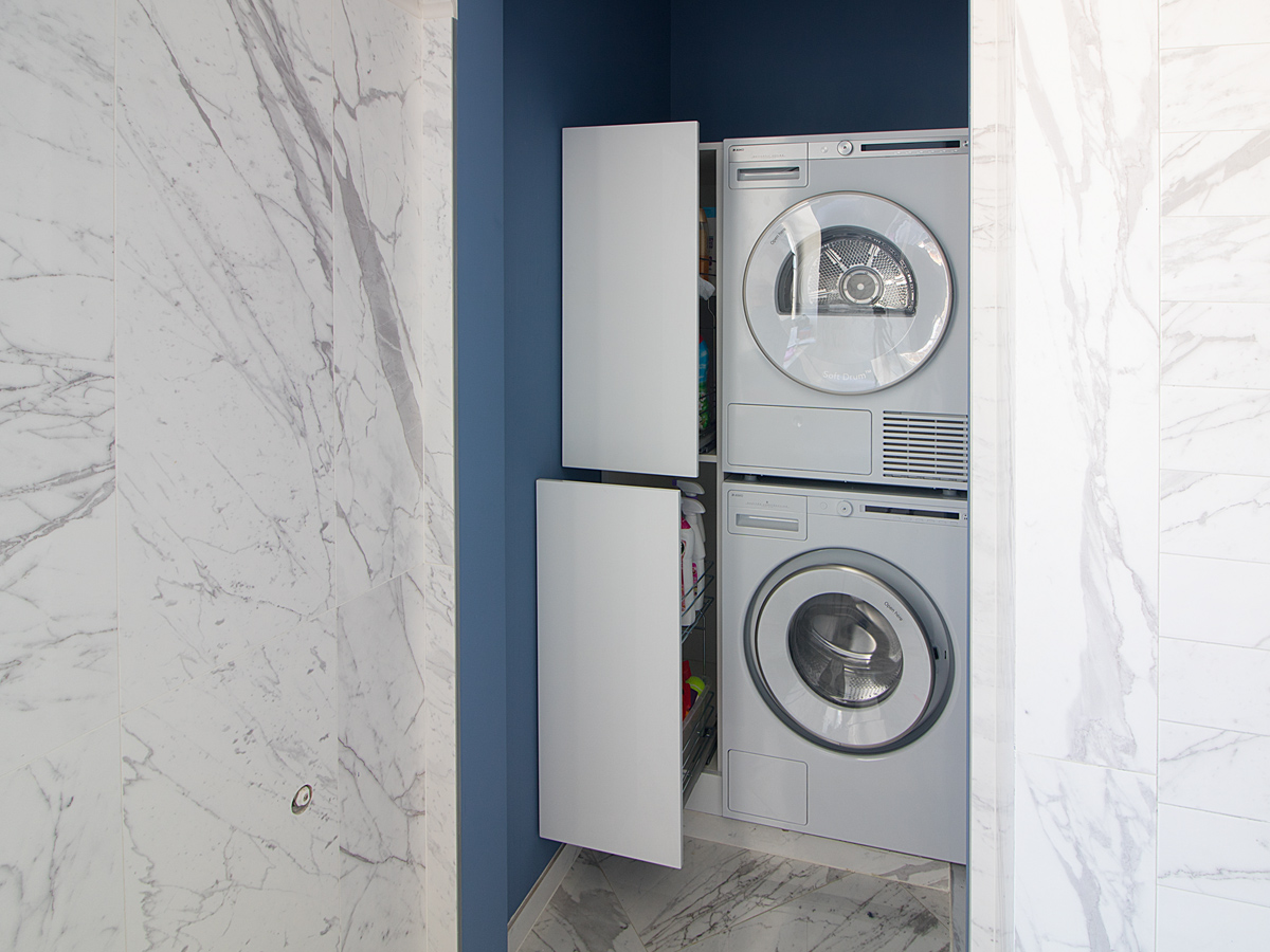 Корзины для хранения белья в построчной комнате очень удобно и функционально.